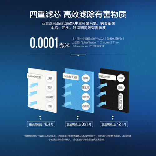 使用无桶的设计方案,能够有效的节省占用面积。搭配三芯过滤,将水中的病菌杂质消除干净,让你喝的每一杯水都能纯净。