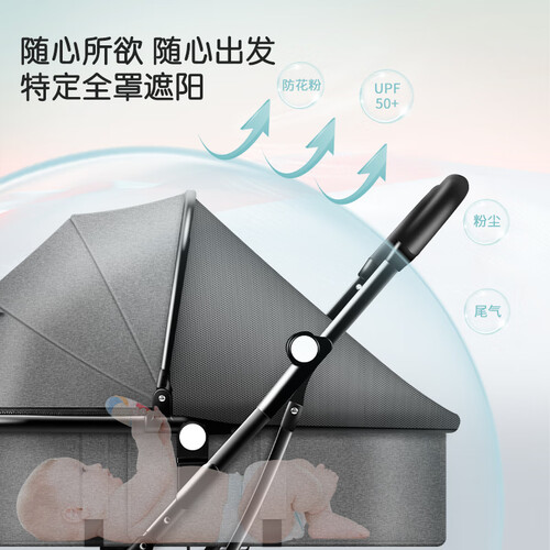 四面都采用透气面料制作而成,特别透气,很适合夏天带宝宝出门使用,同时足够轻便,一人带娃也不会太费力。