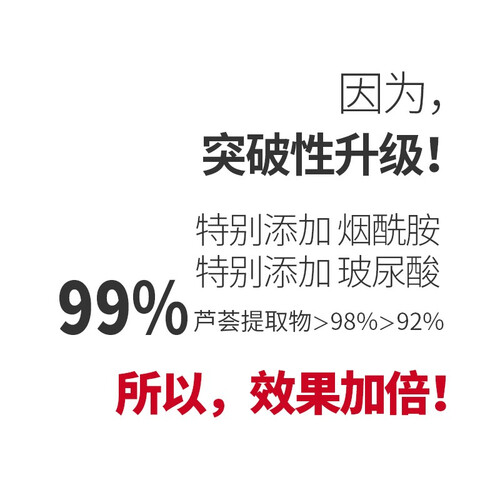 萃取芦荟精粹,还特别添加了烟酰胺和玻尿酸成分,日夜护肤补水保湿,平衡肌肤水油。舒缓修护,打造元气少女水光肌。