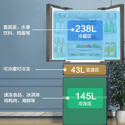美的 玻璃面板 多门冰箱
