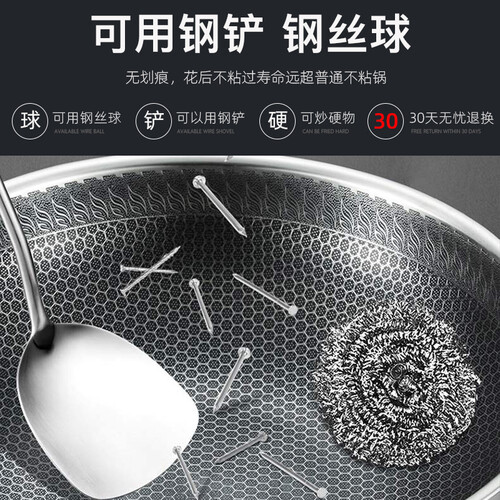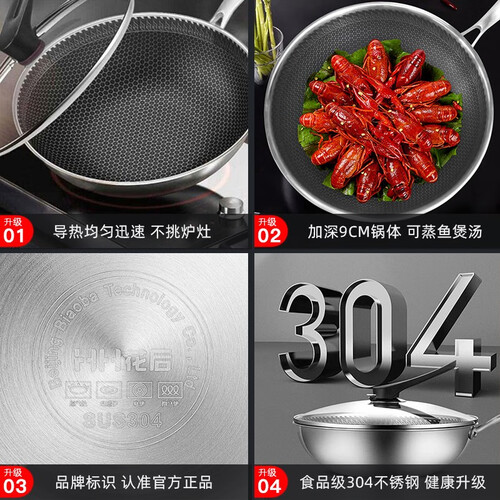 精选食品级的304不锈钢为材质,健康环保,让食物的本真味道侵占你的味蕾。采用精雕微刻工艺,不粘锅少油烟,提高下厨体验。