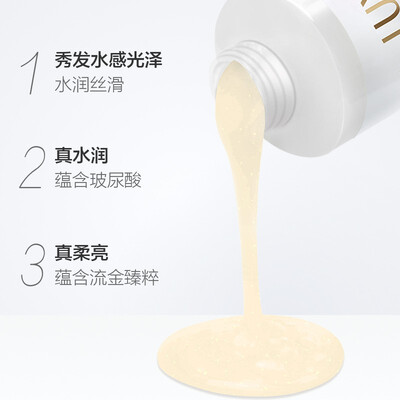 成分中添加了玻尿酸,含有护肤级成分,给秀发补水的同时,更加锁水。采用升级配方设计,使发丝亮泽闪耀。