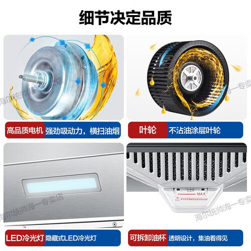 搭载高转速纯铜电机,动力强劲的同时噪音更低,让您能舒心健康的烹饪,再加上三档风速自由可调更加节能省电。