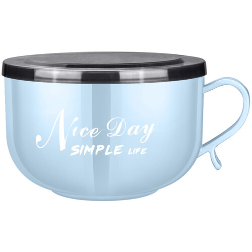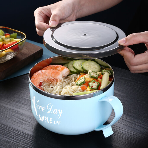 巧居巧具蓝色不锈钢带盖泡面碗