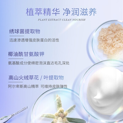 蕴含氨基酸亲肤洁面成分,能够深度清洁,清除油光污垢,温和净颜。搭配多肽成分,可有效促进细胞再生,令肌肤重现弹嫩润泽。
