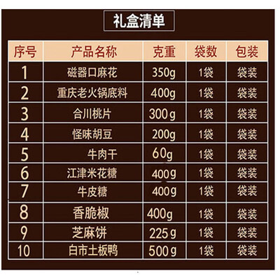 甄选10款重庆经典特产零食,重庆地道好风味一盒搞定,搭配简洁美观外包装,伴手礼佳选。精选好食材,吃的更放心。