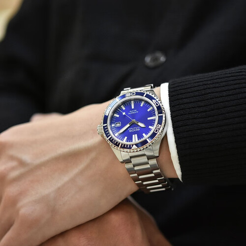拥有发光指针刻度,在弱光条件下,也能清晰读时。具有良好防水性,200米防水距,日常佩戴淋浴无忧。