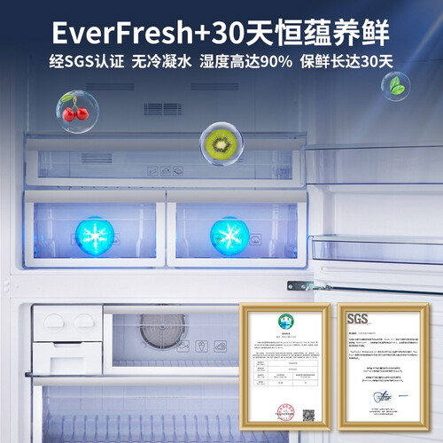 内置恒温养鲜室,为食材提供90%以上的湿度,水润保鲜30天。简约欧式风格设计,更显成熟稳重,提升家装格调。