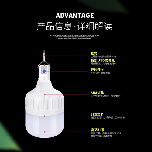 灯体采用ABS塑料,材质坚固,耐热性强,使用安全更耐久用。搭载高品质灯珠,多贴片组合,亮度更高,多场景都适用。