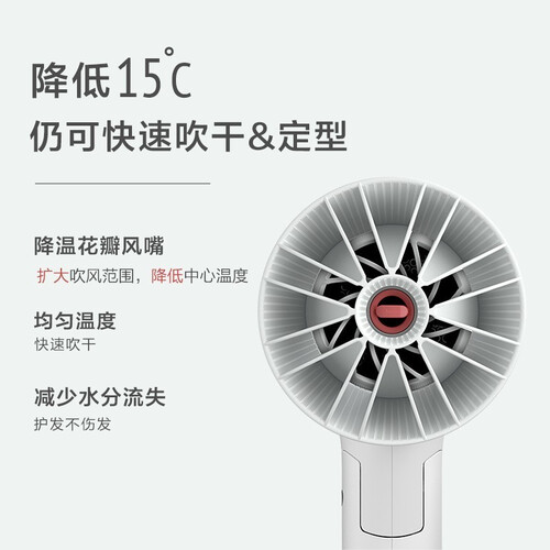 搭载SPA柔护科技,有效实现热量均匀分布和柔滑气流平衡稳定,让发丝莹亮顺滑。吹出的风中含有丰富负离子,抚平毛躁更柔顺。