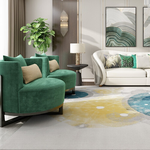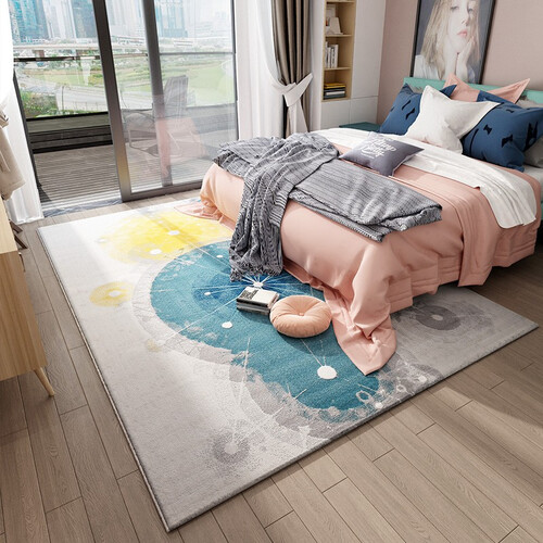 欧纶斯 蓝色羽毛北欧客厅地毯