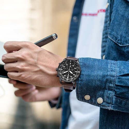 西铁城 三眼表盘夜光防水手表