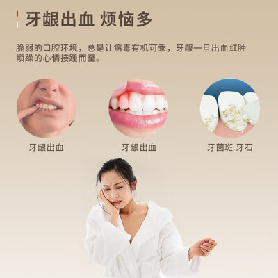 采用温和配方,养护口腔,帮助根除牙龈隐患问题。内含三七、菊花、薄荷提取物,改善牙龈红肿出血,告别社交小尴尬。