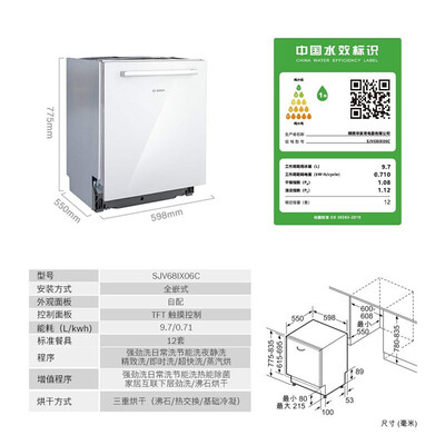 采用S型喷淋臂,可360°冲刷餐具,无死角清洗更洁净。门板颜色支持自定义设计,更符合厨房的装修风格,提升颜值。