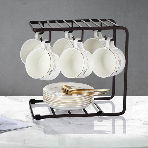 精致小巧的杯身,配以描金杯沿,欧式轻奢气息更厚重,提升家居格调;六杯六蝶搭配U型支架,可整洁收纳,不占台面多余空间。
