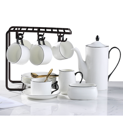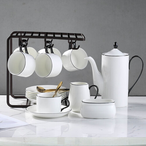 套装为白色杯身搭配黑釉边,呈现欧式奢华精致,而且配套齐全,既能满足日常需求,也能方便收纳归置。
