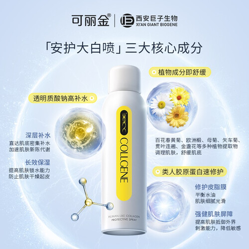 细腻雾感喷头加持,妆后使用不破坏妆容,带给肌肤细腻体验。含有类人胶原蛋白组分,保持肌肤弹性维护皮肤受损屏障。
