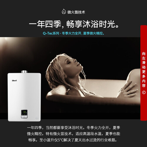 典雅的白色外观,提升简洁格调,清晰液晶显示屏调温简便易操作。采用无缝切换燃烧技术,多处同时使用热水,也能保持恒温状态。
