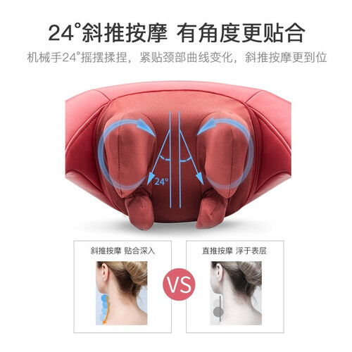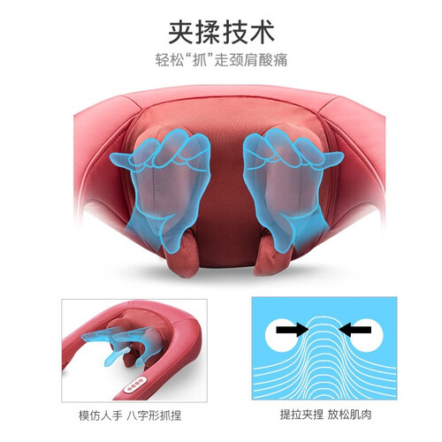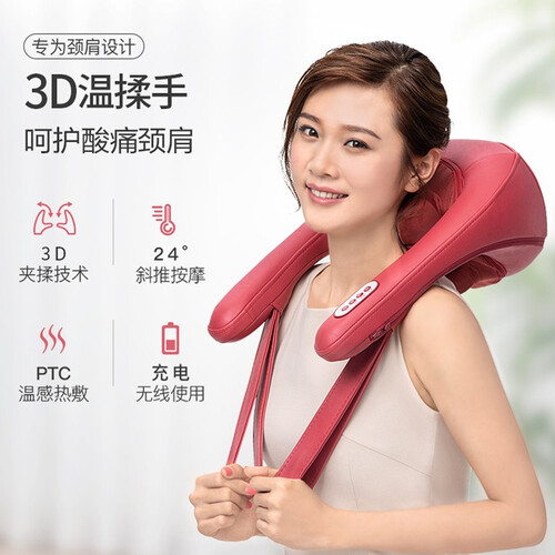 按摩器采用充电式结构设计,解锁多种使用场景,随时可以按摩。采用3D夹揉手按摩机芯,帮你抓走肩颈酸痛,温柔呵护颈椎。