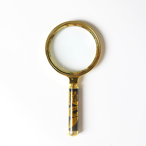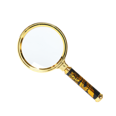 镀金镜框和手柄,十分有质感。手柄处精细雕龙图案,美观大方,庄重尊贵。