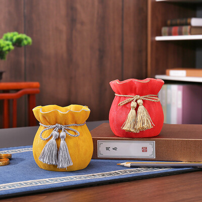 是摆件也是创意笔筒,一物多用,美观与实用并存。简约古朴福袋设计,新中式美感,幸运福袋,寓意福气满满,生活幸福。