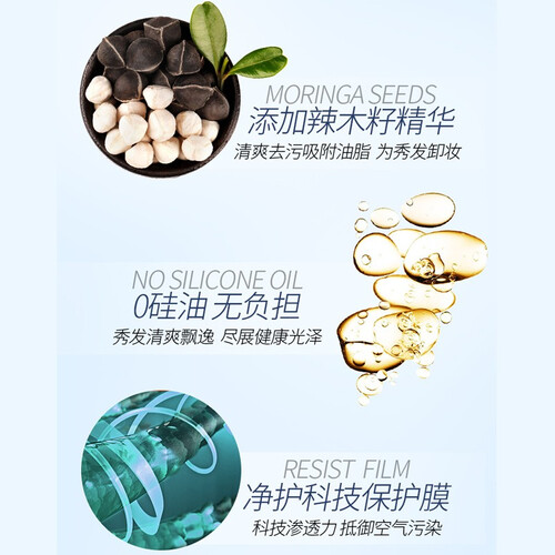 秀发水中添加维他命H,是秀发不可缺少的营养,让秀发更加柔顺。同时不含硅油成分,加强丰盈效果,让秀发更加飘逸。