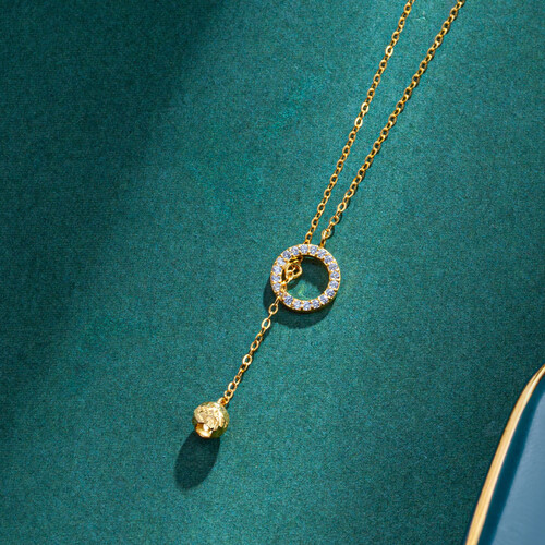 独特的圆球造型吊坠,尽显简约大方的气息。其中镶嵌满满的闪亮小锆石,简约中增添了一份华丽感。