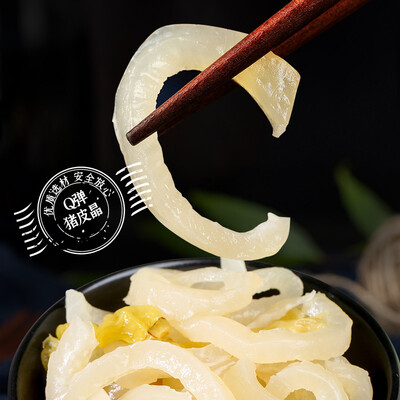 甄选Q弹细腻的猪皮,满满的胶原蛋白,泡山椒味道浸入当中,色泽美观,质地肥厚,酸辣鲜香开胃,老少皆宜。
