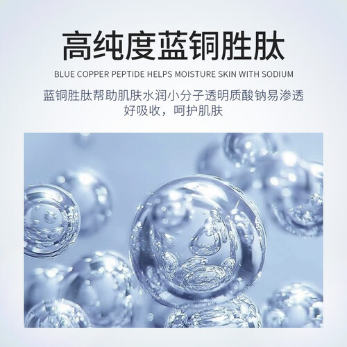 添加高纯度蓝铜胜肽,深层呵护滋润肌肤,提升肌肤弹性;搭配小分子玻水酸,渗透力强快速给肌肤补充水分与养分,令肌肤通透水润。