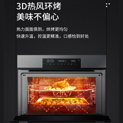 蒸汽锁鲜,保留食材的原味和营养,尽享原汁原味的味道。3D立体烘烤,食材上色均匀,色香味俱全,满足挑剔的味蕾。