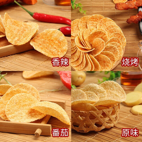 迷你小薯片,散发土豆的醇香,一口一片,更加香脆可口。内含四种不同的口味,带来丰富的口感,味蕾更加享受。