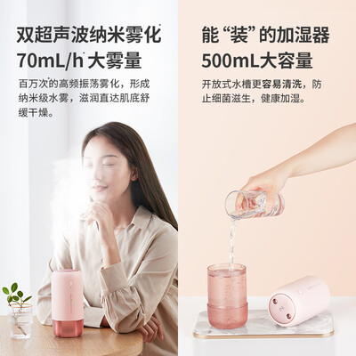 采用无线加湿设计,无杂乱电线缠绕,摆放桌面耐看又舒心。采用双口喷雾设计,出雾量大,能够满足您日常使用需求。