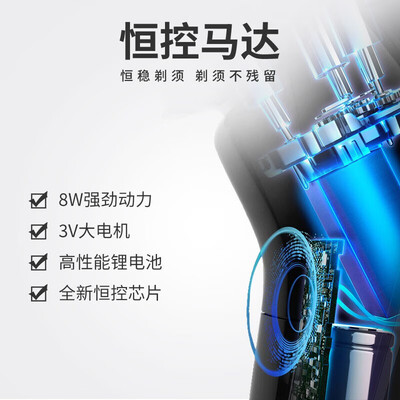 内置8W大功率马达,能够带来如疾风般的高效剃须体验,节约晨起时间;采用七级防水系统,沐浴也可轻松剃须。