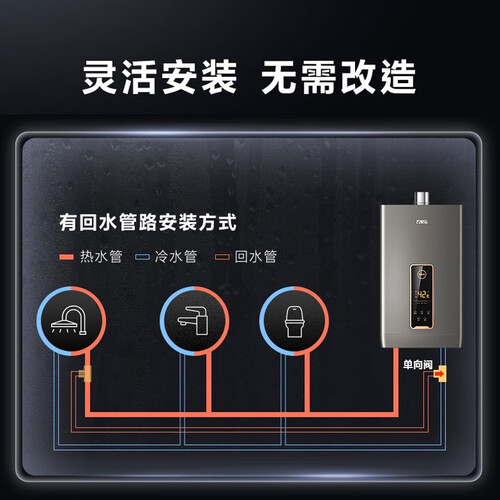 星空灰一体机身,搭载玫瑰金镶边面板,奇妙搭配宛如浩瀚星海般迷人深邃。迅捷点火快速恒温,启停水温零波动,淋浴持久恒温。