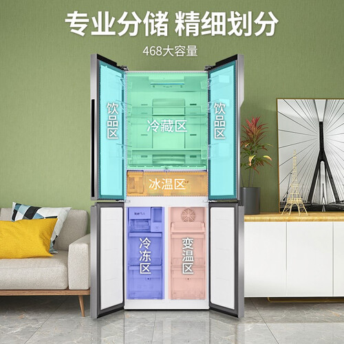 搭载宽幅变温系统,可在-24℃至10℃间调节,保存食物新鲜。多风道设计,层层送风,制冷速度快,保持食物水润新鲜。