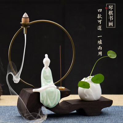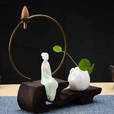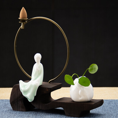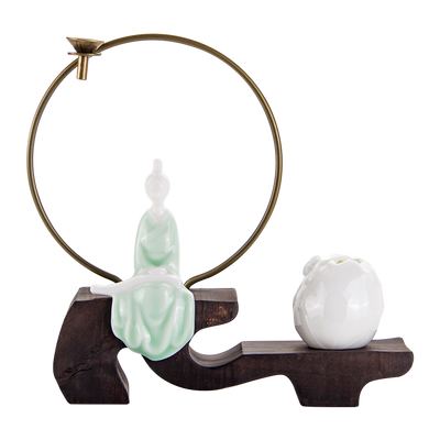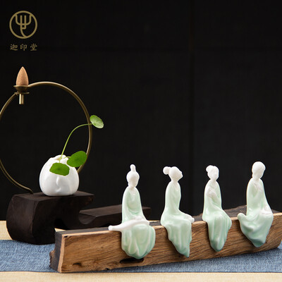 人物形象的设计,经过精细做工制成,使其栩栩如生,搭配其典雅的造型,有效提升了意境,实木底座,经久耐用。