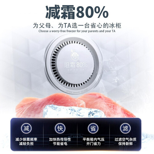 离子净味保鲜技术,能够去除冷柜内的细菌,保证内部干净无菌,同时还能够去除食物产生的各种异味。