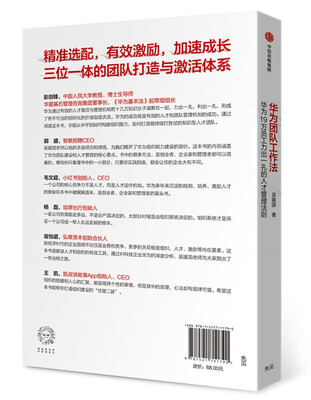 这本书系统阐述了华为精准选配、有效激励、加速成长三位一体的团队管理法则,揭示了华为团队建设和人才管理的核心要点。