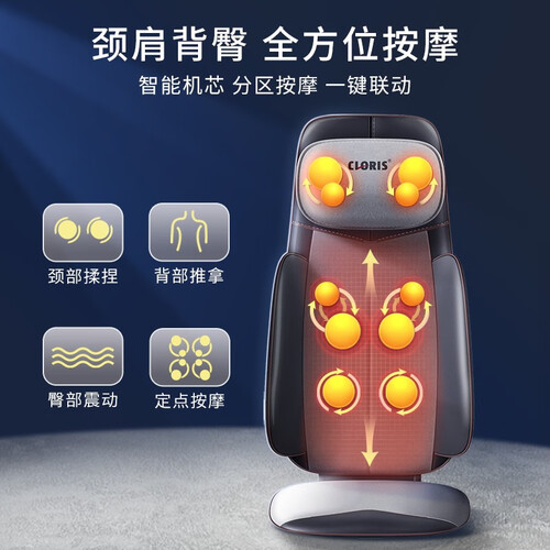 配置便携手控器,可以通过遥控器,轻松控制按摩区域以及力度。座部进行多频震动,以防坐久了臀部会发麻导致血液流通不畅。