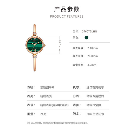 格雅 气质文艺绿色腕表
