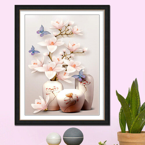 十字绣是有精致花瓶和多彩玫瑰花设计,能够营造富有生机的氛围,打造高质量生活气息。