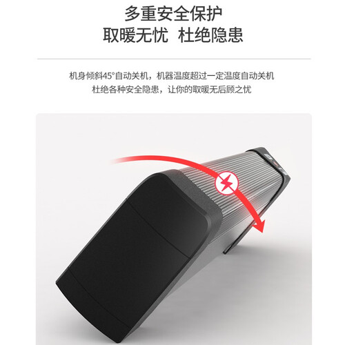 机身角度倾斜至45°后自动关机,避免发生意外烫到手部,加热温度超出后自动关机,取暖更安心,满足多种使用需求。