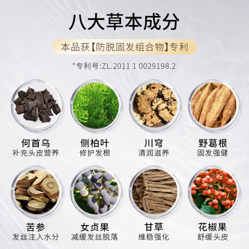发际线“出走”,使颜值掉线,专利级防脱成分,根源改善脱发断发,秀发蓬松,为颜值加分。八大草本成分加入,赋活毛囊生命力。