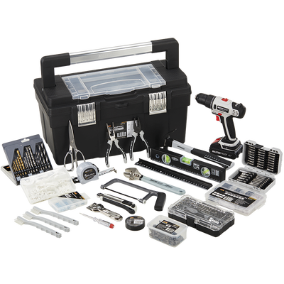 256件工具箱套装,厨房改造和电器家具维修都适用,满足日常维修所需。三合一手电钻,续航持久轻便好用。