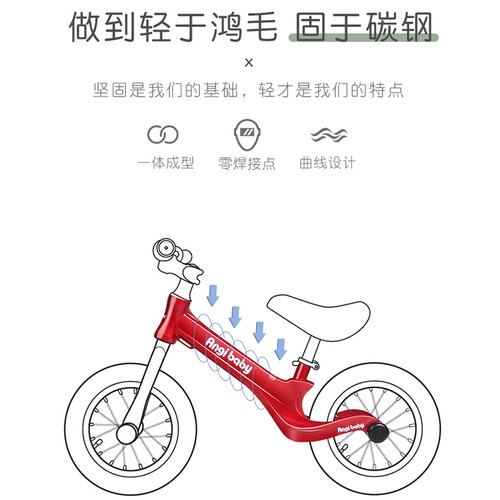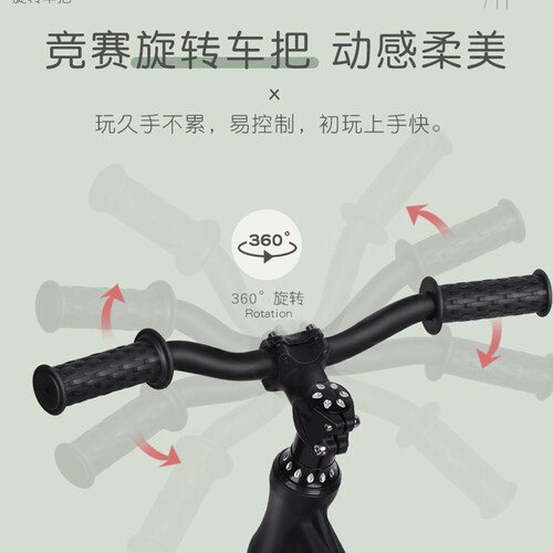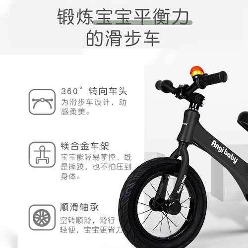 轻量车身设计,重量轻且坚固,宝宝也能轻松拿起。配有防滑充气轮胎,抓地力强,耐磨减震,滑行不颠屁屁。