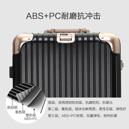 ABS+PC材质搭配,受到压力后能够快速地回弹,无惧暴力运输。加厚防撞包角,质地更加的坚韧,无惧冲击。