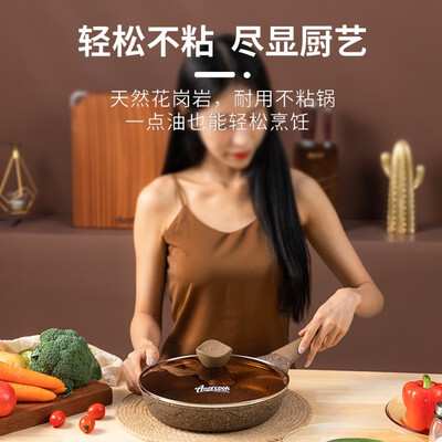 采用花岗岩表面不粘设计,有效减少食物与锅体的接触面积,翻炒轻松不易粘锅。轻油少烟设计,放心烹饪不惧油烟困扰。