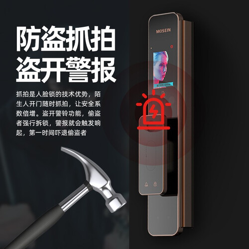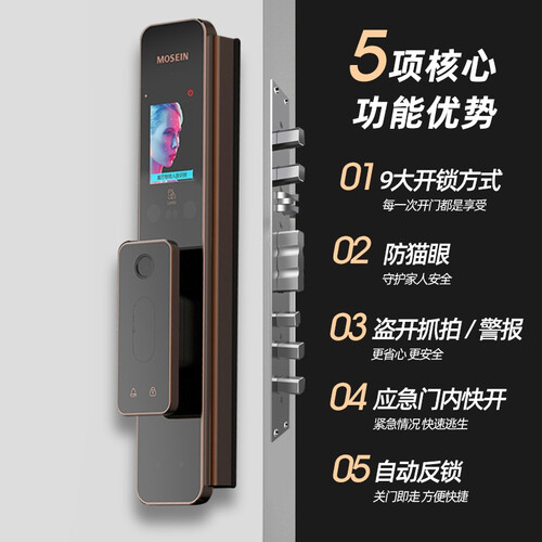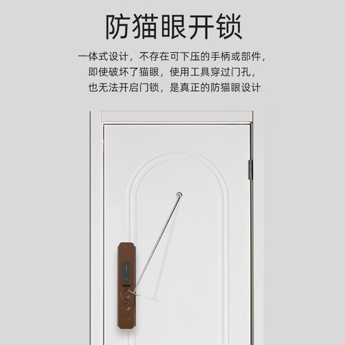 专利外观设计,整体视效大气更富美感,为门体增添一抹亮色。红外感应唤屏,夜晚也可准确识别,无需另外开灯。