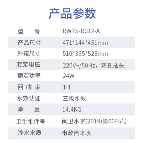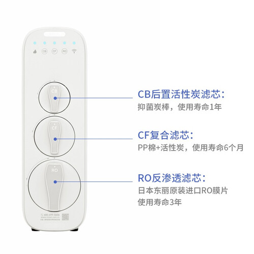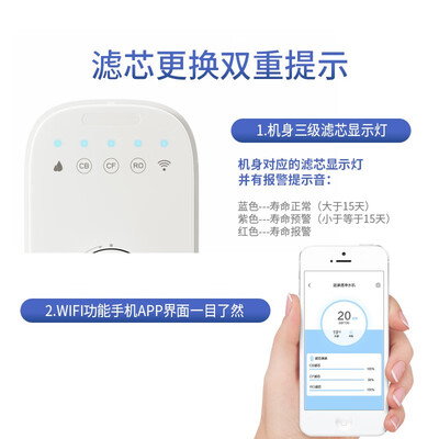 带有缺水提示功能,当进水水压不足时会亮灯提示,方便检查水路。带有超时保护设计,及时预警,避免忘关净水器。