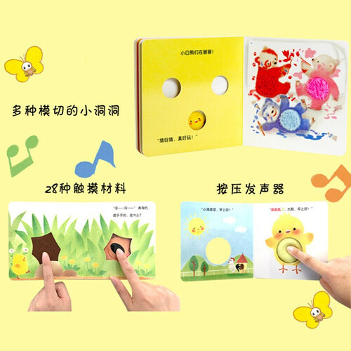 这套书融合触摸材料、模切洞洞、互动游戏和发声器设计而成,用立体的方式介绍动物知识,可锻炼孩子的触觉,有利于感官发展。